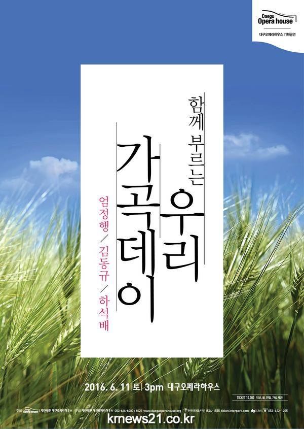 오는 6월11일 토요일 오후 3시에 펼쳐질 대구오페라하우스 <함께 부르는 우리가곡데이>는 유쾌한 ‘토크’와 즐거운 ‘함께 부르기’가 있어 중년 관객들에게는 잠시나마 학창시절 음악수업의 추억을 생생하게 되살리는 소중한 시간이 될 것으로 보인다. 특히 테너 엄정행, 바리톤 김동규, 그리고 테너 하석배는 입담 좋기로 정평이 난 성악가들로서 관객들이 지루할 틈 없이 우리가곡에 관한 이야기를 소개하고, 가곡을 잘 부르는 방법까지 ‘원포인트 레슨’을 진행할 계획이다.