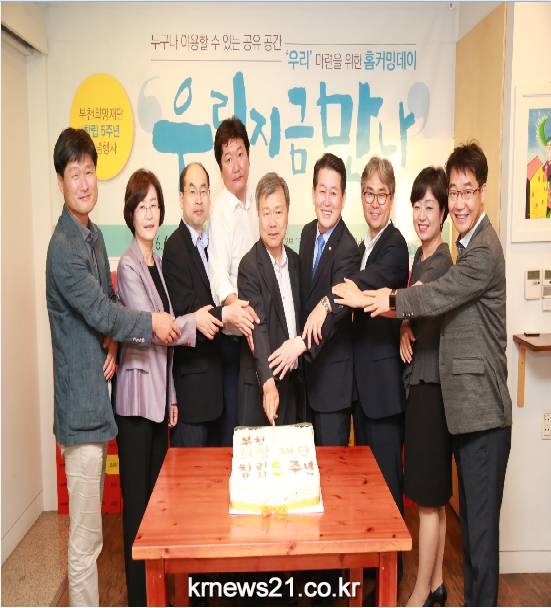 부천희망재단(이사장 정인조)은 창립 5주년을 맞이하여 재단사무실(중동1144-4번지 현해탑프라자 4층)에서 작은 기념식을 진행했다."고 밝혔다.