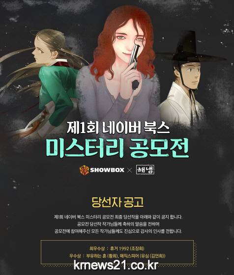 모바일 전자책 서비스 네이버 북스는 지난 1월 가능성 있는 창작자를 발굴, 양질의 장르소설 콘텐츠가 서적영화 등의 2차 창작물로 이어질 수 있도록 ㈜해냄출판사, ㈜쇼박스와 함께 ‘제1회 네이버 북스 미스터리 소설 공모전’을 개최했다.
