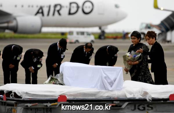 테러 현장을 방문했던 유가족들과 시신을 태운 일본 정부 전용기가 오전 6시 도쿄 하네다 공항에 착륙했다.