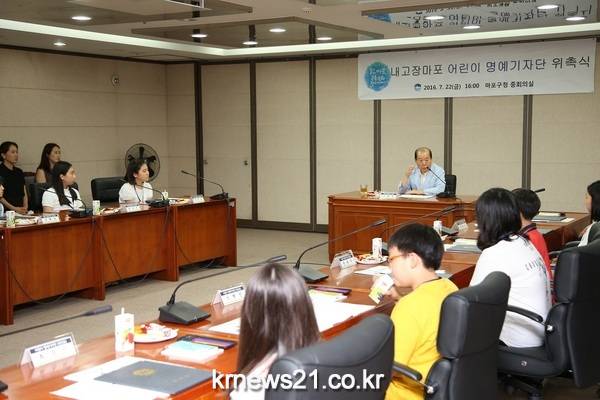 마포구(구청장 박홍섭)는 지난 7월 22일(금) 오후4시 마포구청 중회의실에서 ‘제1기 내고장마포 어린이명예기자단 위촉식’을 개최했다고 밝혔다.