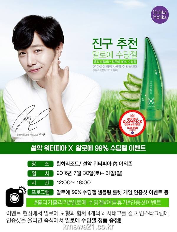 엔프라니(주)의 로드샵 브랜드 ‘홀리카 홀리카’가 7월 30일(토)부터 31일(일)까지, 양일간 강원도 속초시에 위치한 한화리조트/설악 워터피아에서 ‘알로에 99% 수딩젤’ 체험 이벤트를 진행한다.