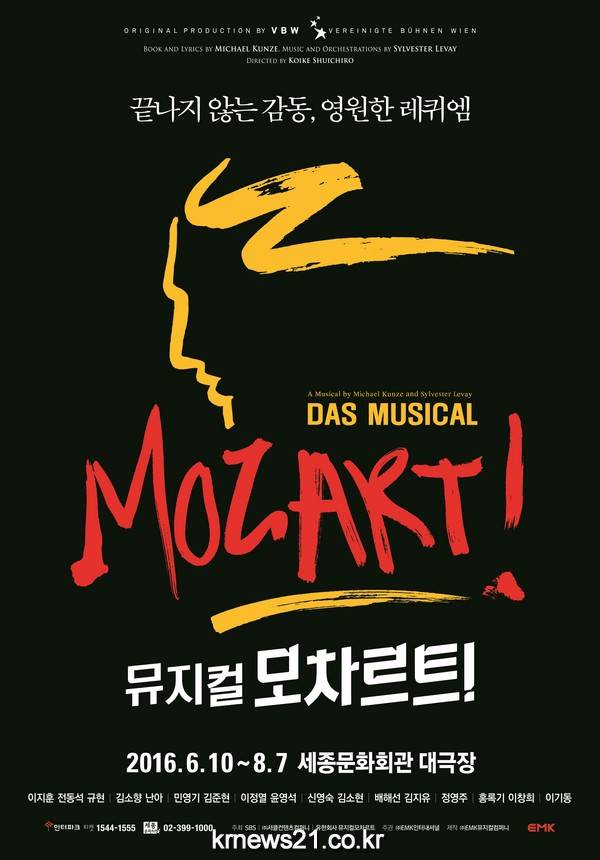 2016 뮤지컬 ‘모차르트!’는 8월 20일~21일 대구 계명아트센터, 8월 27일~ 28일 광주문화예술회관 대극장, 9월 3일~4일 김해문화의전당 마루홀 공연을 통해 흥행 열기를 이어갈 예정이다.
