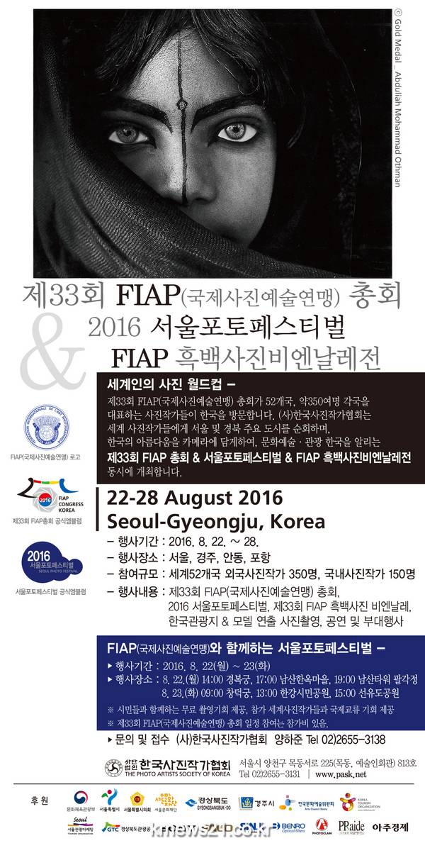 (사)한국사진작가협회(이사장 양재헌)는 세계인의 사진축제인 제33회 국제사진예술연맹(FIAP)총회를 서울과 경주에서 개최한다.