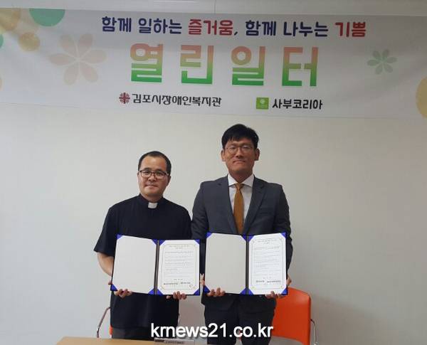 (재)인천교구천주교회유지재단 산하 김포시 장애인복지관(관장 정병철, 이하 복지관)은 (주)사부코리아(대표 김우태, 이하 사부코리아)와 함께 지역 내 장애인을 위한 공동작업장(이하 ‘열린 일터’)을 운영한다고 밝혔다.
