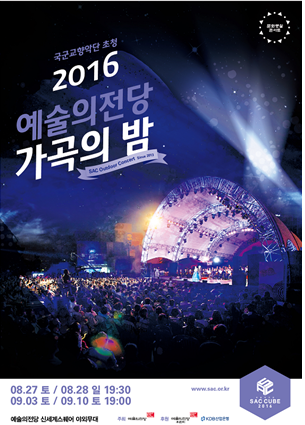 <2016 예술의전당 가곡의 밤>은 고학찬 예술의전당 사장과 황수경 아나운서의 사회로, Sop. 명성희, 배우 강부자, Ten. 엄정행 등이 회차별로 특별출연하며, 8월 28일(일)에는 ‘스페인밀레니엄합창단’이 우리 민요․가곡과 함께 이국적인 스페인 민요들로 여름밤을 수놓을 예정이다.