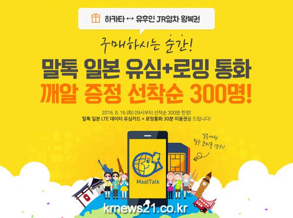 여행박사는 해외유심 및 로밍서비스 제공업체인 말톡과 제휴를 맺고 규슈로 떠나는 자유여행객들이 음성통화와 무제한 데이터를 즐길 수 있도록 말톡의 일본 유심카드를 제공하는 이벤트를 진행한다.