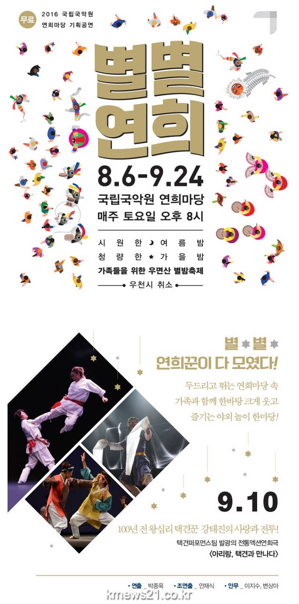 두드리고 뛰는 연희마당 속 가족과 함께 한바탕 크게 웃고 즐기는 야외놀이 한마당, ‘별별연희’ 공연 일정 및 내용에 관한 더 자세한 정보는 국립국악원 홈페이지에서 볼 수 있다.