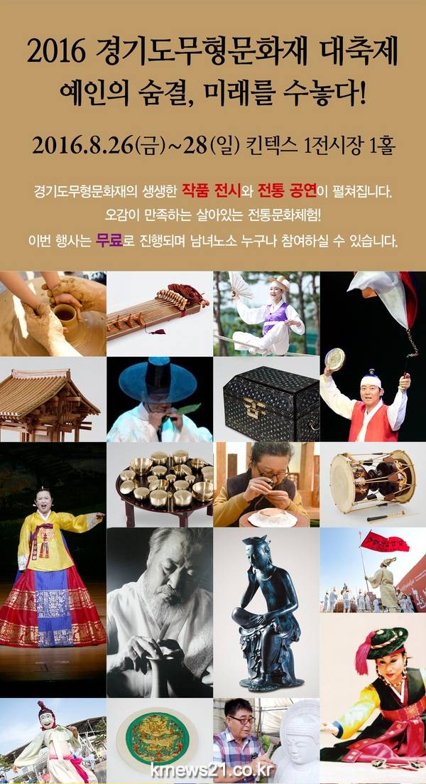 이번 대축제는 ‘예인의 숨결, 미래를 수놓다’라는 주제로, 2016년 경기도 무형문화재 공개 행사를 겸하는 자리이자, 경기도 무형문화재로 지정된 종목 중 18개의 기능 종목과 22개의 예능 종목이 한자리에 모인 행사이다. 이 중에서 ‘시흥 군자봉 성황제’는 둘째 날인 8월 27일(토) 두 번째 순서로 무대에 올라, 시흥만의 문화적 우수성을 선보인다.