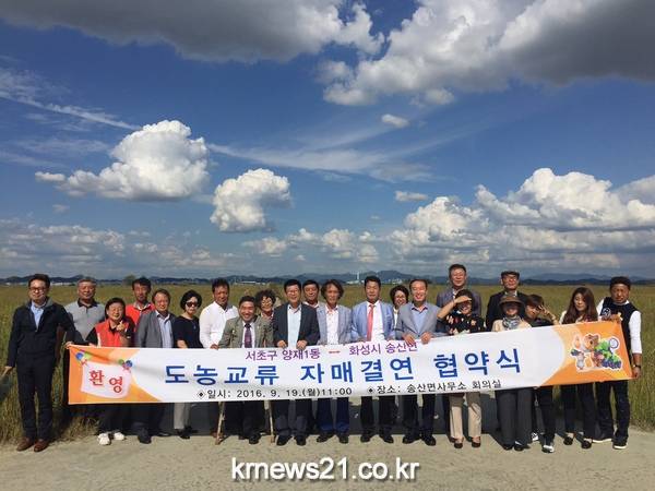 화성시 송산면은 지난 19일 서울시 서초구 양재1동과 도․농 상생발전을 위한 자매결연을 맺었다.