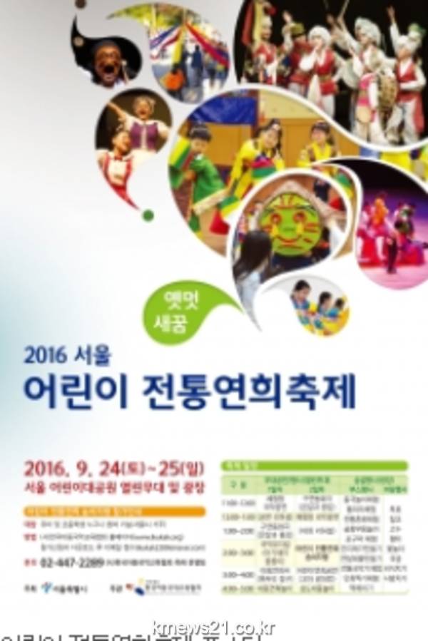 사단법인 한국아동국악교육협회(대표 전송배)는 글로벌 시대 미래의 성장동력이자 세계를 이끌어갈 인재로 자라날 어린이들이 우리나라의 고유한 전통연희문화에 대한 긍정적인 경험을 통해 올바른 문화 정체성을 함양할 수 있도록 24일(토)과 25일(일) 양일간 광진구 능동 어린이대공원에서 ‘2016 서울 어린이 전통연희축제’(부제: ‘옛멋 새꿈’)를 개최한다고 밝혔다.