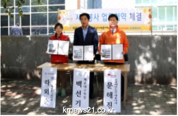 조광페인트(대표이사 문해진, 이대은)는 24일 부산 해운대 좌동 NC백화점 앞 광장에서 백선기 해운대 구청장, 라외선 해운대 자원봉사센터장 등이 참석한 가운데 ‘해운대구 행복미소 캠페인’ 공동사업 추진을 위한 협약을 체결했다고 밝혔다.