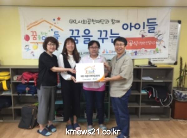 공익법인 GKL사회공헌재단(이사장 이덕주)의 후원으로 2015년부터 올해로 2년째 진행 중인 ‘GKL사회공헌재단과 함께 꿈을 꾸는 아이들’은 쾌적하고 깨끗한 지역아동센터를 위해 낡은 장판 교체, 고장난 창문, 지저분한 벽지, 냉난방시설 구축 등 열악한 시설환경을 개보수하여 안전한 지역아동센터를 구축해주는 지원 사업이다.