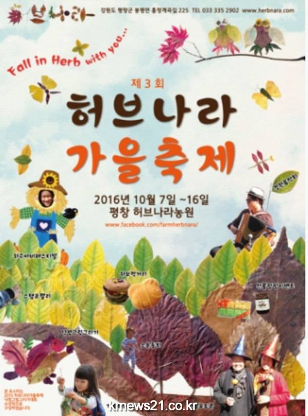 평창에 위치한 ‘허브나라농원’(대표 이호순, 이두이)이 강원도 단풍경관이 절정인 10월 7일부터 16일까지 10일 동안 ‘Fall in Herb With You’라는 주제로 ‘제3회 허브나라 가을축제’를 개최한다고 밝혔다.