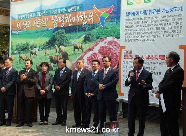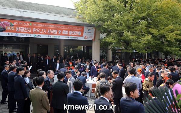 이낙연 전라남도지사는 14일 국회 후생관 앞뜰에서 여야 국회의원과 정부 부처 관계자, 수도권 소비자들이 참석한 가운데 개최된 함평천지 한우 고기 소비 촉진 행사에 참석해 전남산 한우고기를 많이 소비해줄 것을 당부했다.