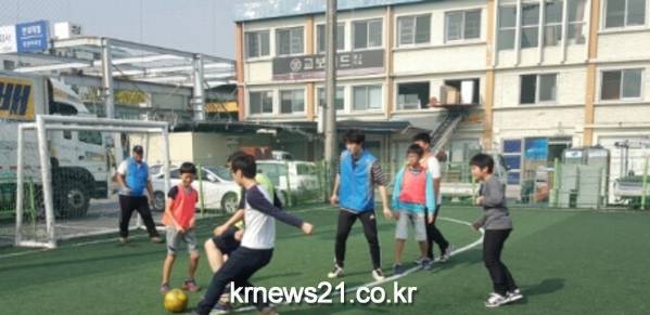 5일(토) 한국보건복지인력개발원(원장 류호영) 대전사회복무교육센터가 대전·세종·충청 지역 사회복무요원들로 구성된 재능나눔 봉사동아리 ‘가온누리’ 회원들과 함께 대전광역시 용두동에 위치한 성락지역아동센터를 찾아 봉사활동으로 아이들과 함께하는 축구교실과 레크레이션을 진행했다고 밝혔다.
