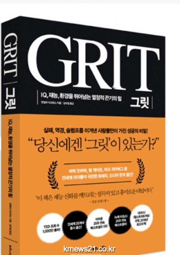백악관과 세계은행, ‘포천’ 500대 기업의 최고경영자들이 자문을 구하는 명망 높은 컨설턴트이자 ‘천재들에게 주는 상’으로 유명한 맥아더상를 수상하면서 차세대 지식인으로 떠오르고 있는 저자 앤절라 더크워스는 ‘그릿 GRIT’에서 어떤 영역에서든지 뛰어난 성취를 이루는 가장 큰 요인은 지능도, 성격도, 경제적 수준도, 외모도 아닌 바로 ‘그릿’grit이었다고 말하고 있다.