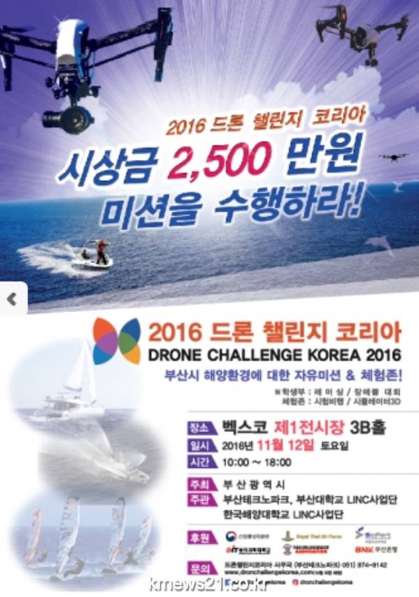 부산시가 다음달 12일 벡스코 제1전시장에서 드론쇼 코리아의 열기를 이어갈 ‘2016 드론 챌린지 코리아’ 경진대회를 개최한다고 밝혔다.