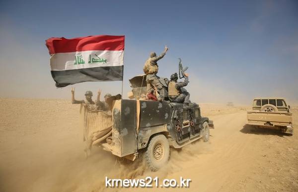 이라크 군이 모술에서 남쪽으로 약 30km 떨어진 마을에 배치됐다. 이 곳은 IS 지하디스트에게서 해방된 지역이다.