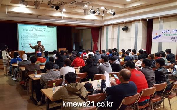 안산시 다문화지원본부(본부장 이창우)는 지난 10월 23일 본부 3층 문화의 집에서 외국인 근로자들의 직장 생활과 지역 사회에서의 원활한 적응을 돕기 위해 인도네시아 출신 근로자 80명을 대상으로「외국인근로자 인권·법률 교육」을 실시했다.
