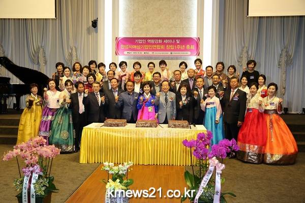 안성시여성기업인연합회(회장 최옥이)는 지난 25일 도기동에 위치한 더 AW 웨딩 컨벤션에서 창립 1주년 기념행사를 성황리에 개최했다고 밝혔다.