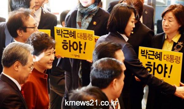 그러나 야권은 박 대통령이 국면 전환을 위한 것에 불과하다며 박 대통령의 탈당과 2선 후퇴를 촉구했다. 정의당 의원들과 야당 보좌관들은 국회 본관에서 '박근혜 대통령 하야!' 피켓을 들고 하야 요구 구호를 외치기도 했다.