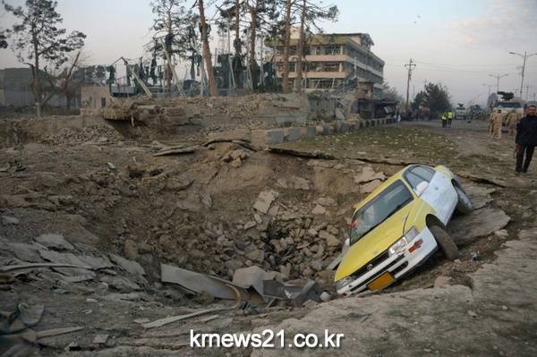 아프가니스탄 북부 마자리샤리프에 있는 독일 영사관에서 지난 10일(현지시간) 무장조직 탈레반의 차량 폭탄 테러 현장. 이날 공격으로 2명이 사망하고 100명이 넘는 부상자가 발생한 것으로 알려졌다.