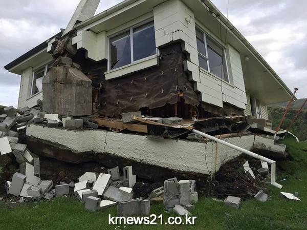 뉴질랜드를 강타한 규모 7.8의 강진으로 카이코우라의 한 주택이 심하게 손상됐다.