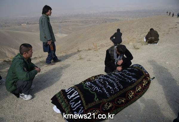 ▲ AFP / Shah Marai[제공자ⓒ 뉴스21통신. 무단전재-재배포 금지.]아프가니스탄 카불의 시아파 사원에서 발생한 자살 폭탄 테러로 사망한 27명의 희쟁자 중 한 명의 시신 앞에서 친척이 울음을 터뜨렸다.