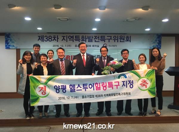 양평군은 7일 중소기업청 지역특화발전특구위원회에서 ‘헬스투어힐링특구’로 지정되었다고 밝혔다.