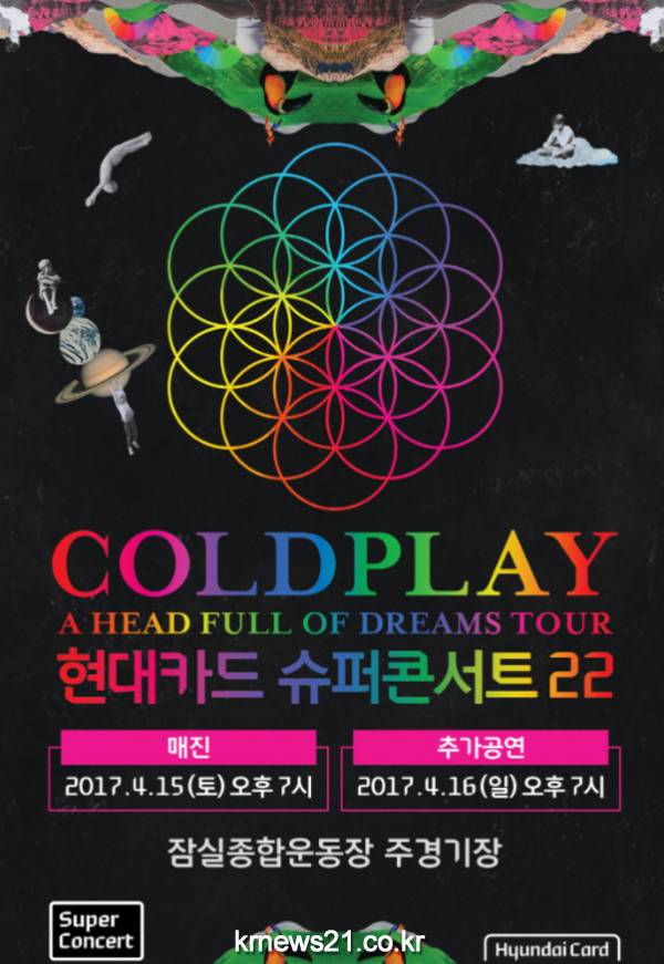 한편 콜드플레이 콘서트는 오는 2017년 4월 15일, 16일 양일간 잠실종합운동장 주경기장에서 개최된다.