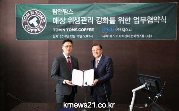 탐앤탐스가 세스코와 위생관리강화를 위한 업무협약을 체결했다.