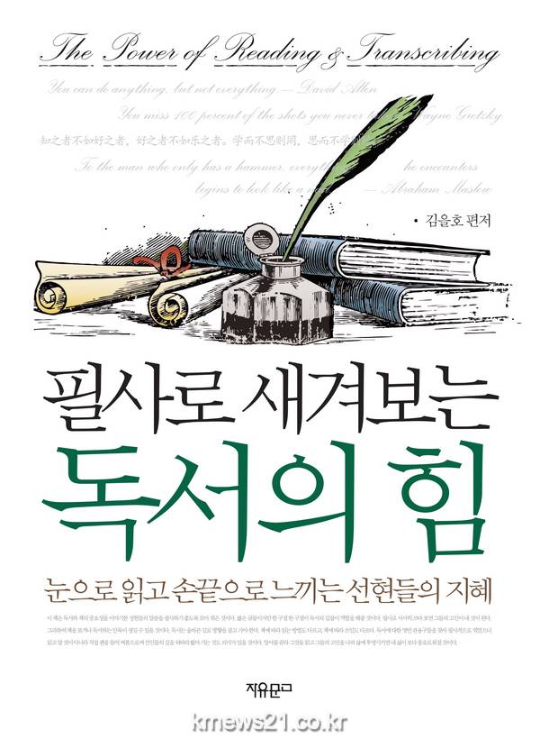 이 질문에 대한 대답이 최근 출간된 <필사로 새겨보는 독서의 힘>이다. 이 책의 저자는 국민독서문화진흥회 이사장과 한국독서교육신문 발행인을 맡고 있는 김을호이다. 그는 매년 대부분을 학생들과 군장병, 주부들을 위한 독서 강연으로 보낸다. 그는 1년에 강연이 200회가 넘을 정도로 바쁘게, 열정적으로 활동한다. 이 책은 저자가 독서 강연에서 활용하던 자료들을 엮어 필사용으로 편집한 것이다.