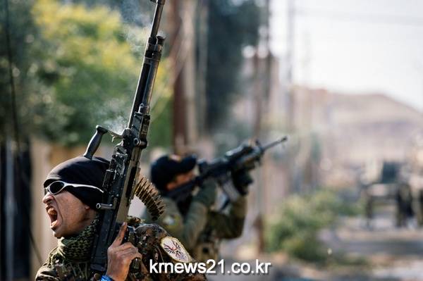 ▲ AFP / Dimitar DILKOFF[제공자ⓒ 뉴스21통신. 무단전재-재배포 금지.]모술의 알-리팍 지역에서 IS와 전투를 벌이고 있는 이라크 특수 부대 이라크 대테러 특수 부대원.