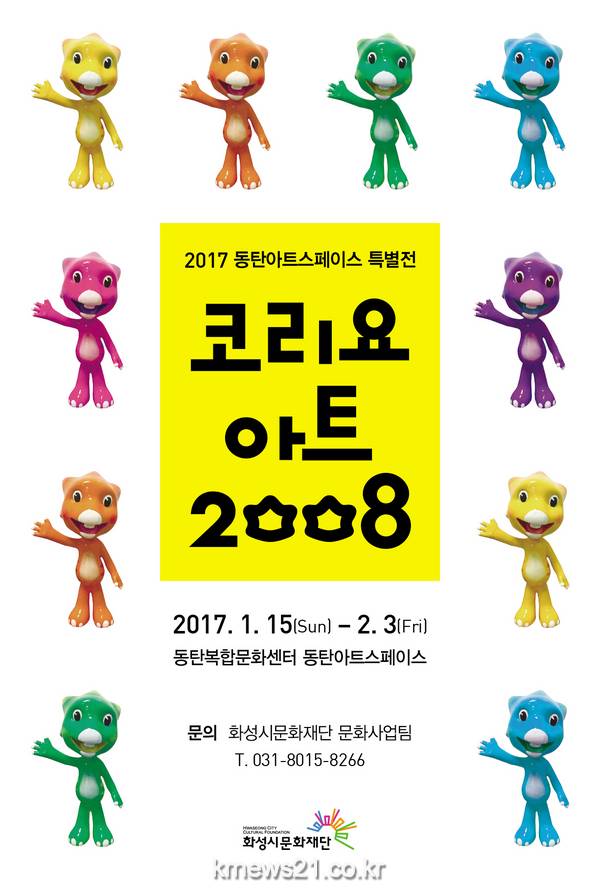 화성시 문화재단(대표이사 권영후)은 2017년 1월 15일(일)부터 2017 동탄 아트스페이스 특별전 <</span>코리요 아트 2008>展을 동탄 복합 문화센터 1층 동탄 아트스페이스에서 진행한다. 이번 전시는 동탄 아트스페이스에서 2017년 새해를 맞아 처음 선보이는 기획 특별전으로 화성시의 대표 캐릭터 코리요 모형을 전시한다.