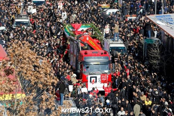 이란 수도 테헤란에서 화재로 인한 건물 붕괴로 사망한 소방관들의 장례식에 참석한 수천명의 사람들.