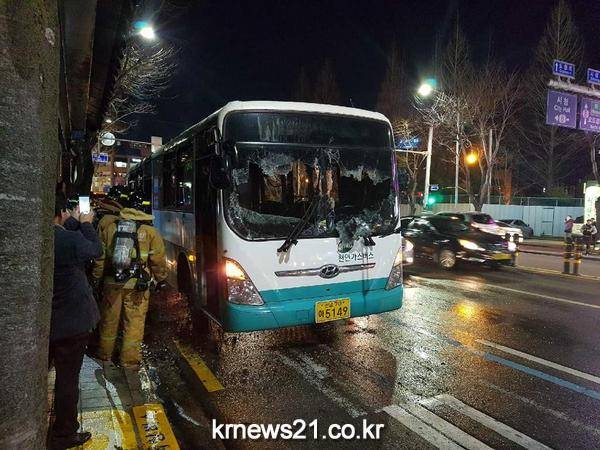 6일 오후 6시 33분경 60대 승객이 정류장에 정차 중이던 시내버스에 인화물질(2통, 36리터)을 뿌리고 불을 붙이는 사고가 발생했다.