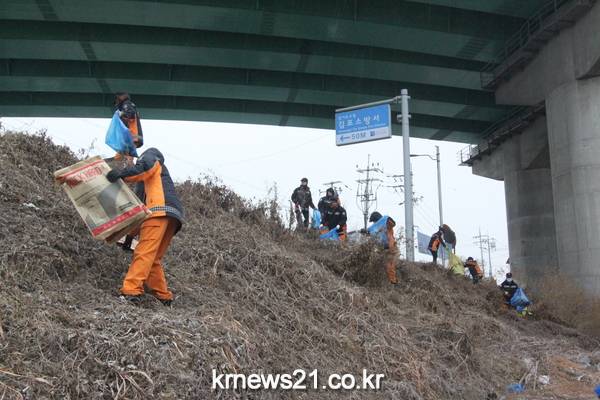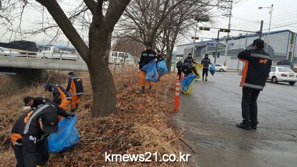 으며 김포소방서 정문을 시작으로 걸포공원 앞 사거리, 김포우리병원 앞 등 3구역으로 나누어 도로 및 하천 주변의 각종 쓰레기 수거와 도로상 위험요소를 제거했다.