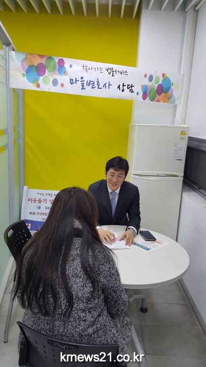 손○○(남, 68세)씨는 “며칠 동안 혼자서 고민했던 문제를 가까운 주민센터에서 마을변호사와 상담하고 해결할 수 있을 것 같다.”며 감사의 말을 전했다.