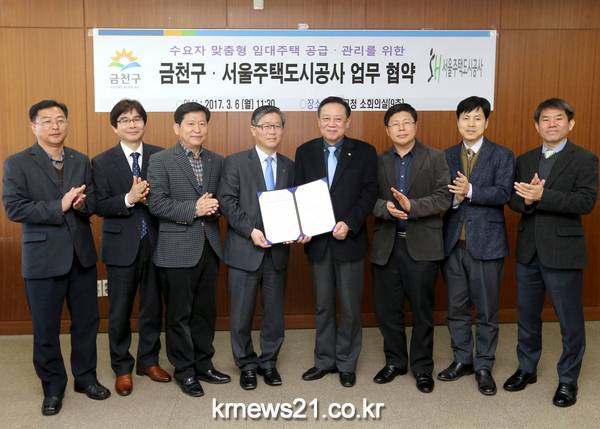 주요 협약내용으로는 △수요자 맞춤형 임대주택 사업 지속 추진 △중요한 하자, 보수 등은 SH공사가 맡고 경미한 수선과 전반적인 건물관리는 금천구가 맡는 등 임대주택 공급 및 관리를 위한 사항이 포함됐다.