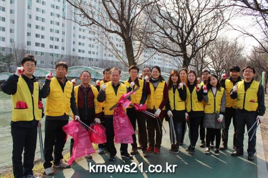충북지방조달청 봉사동호회 ‘온나눔’은 21일 청주시 흥덕구 가경천 일대에서 하천환경정화 봉사활동을 펼쳤다.