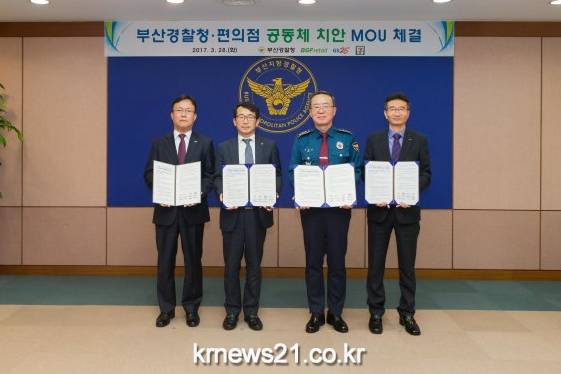 부산경찰청은 24시간 운영하는 BGF리테일·GS리테일·코리아세븐 편의점 내 범죄예방을 위해 28일 편의점 3사 측 지역대표와 업무협약을 체결했다.