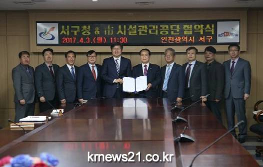 인천시설관리공단(이사장 이응복)과 인천시 서구(구청장 강범석)는 3일 서구청 대상황실에서 업무협약(MOU)을 체결했다.