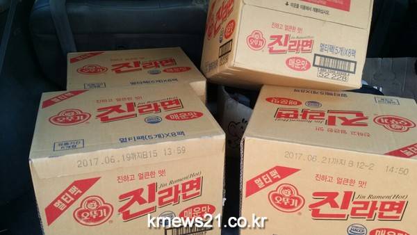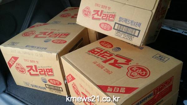 고양시 독거 노인과 결손가정에게 라면박스, 쌀2포 전달 하였다