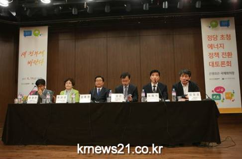 토론회 1부에서는 이해식 강동구청장을 비롯 김홍장 당진시장, 김창섭 가천대 에너지IT학과 교수, 하선규 부산 YWCA 전 회장, 유정민 서울에너지공사 에너지연구소 수석연구원이 에너지 전문가로 참석했다.