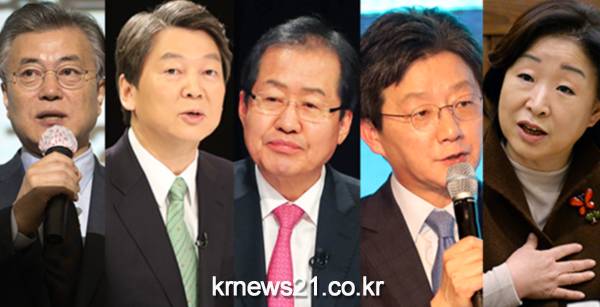제19대 대통령 선거를 향한 22일간의 공식 선거운동이 17일 시작됐다. 첫날 유세에서 기호 1번 문재인 더불어민주당 후보는 '국민 통합', 2번 홍준표 자유한국당 후보는 '서민 행복', 3번 안철수 국민의당 후보는 '더 좋은 정권 교체', 4번 유승민 바른정당 후보는 '새로운 보수', 5번 심상정 정의당 후보는 '노동이 당당한 나라'를 강조했다.