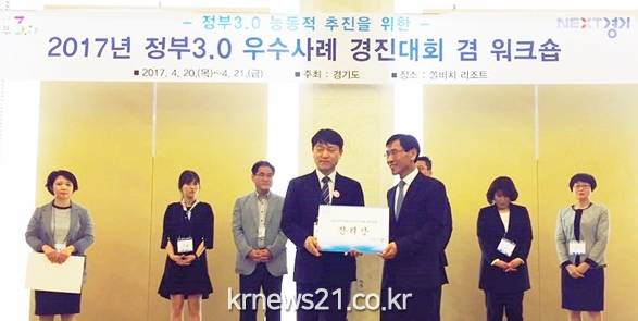 시에 따르면 지난 20일~21일까지 양일간 강원도 양양에서 경기도 31개 시·군이 참가한 가운데 실시된 '2017년 경기도 정부3.0 우수사례 경진대회'는 경기도 내 정부3.0 우수사례를 발굴하고 공유·확산해 나가고자 마련됐다.