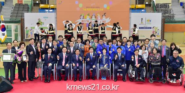 수원시는 27일 수원종합운동장 실내체육관에서 ‘제37회 장애인의 날’ 기념행사를 열었다.