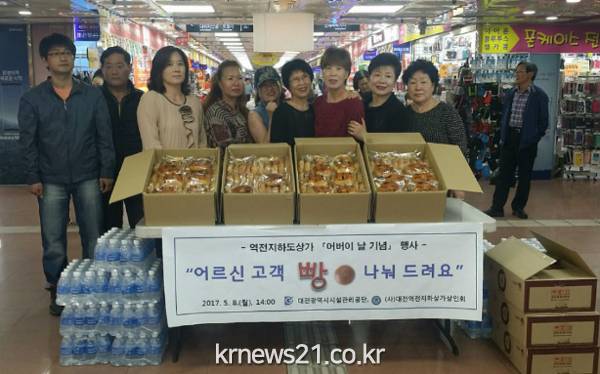 대전시설관리공단은 어버이 날인 8일 역전지하상가에서 60세 이상 고객을 대상으로 ‘빵 나눔 행사’를 진행했다.