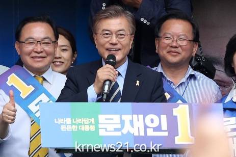 그야말로 압도적인 표차다. 지난 18대 대선에서 당시 박근혜 새누리당 후보에게 약 108만표 차이로 패배했던 문 당선인은 4년간의 절치부심 끝에 557만표라는 압도적인 표차이로 당선된 것이다.